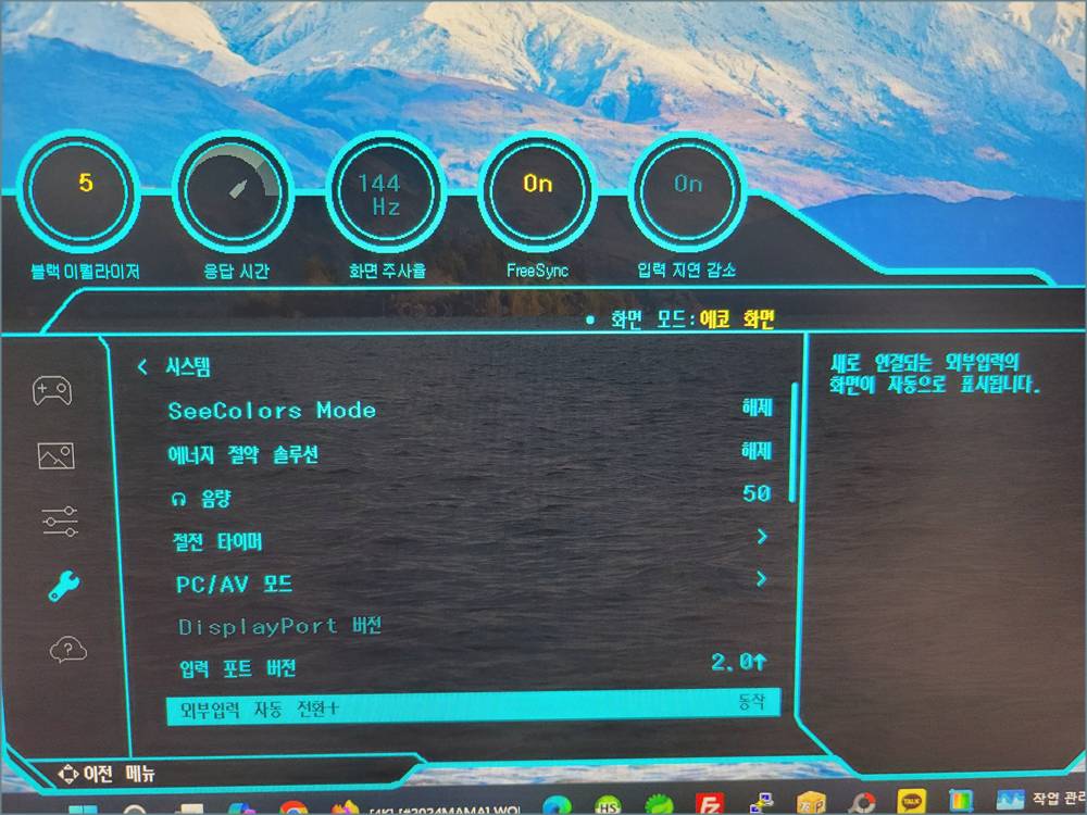 실제 모니터의 모습이 더 좋다.